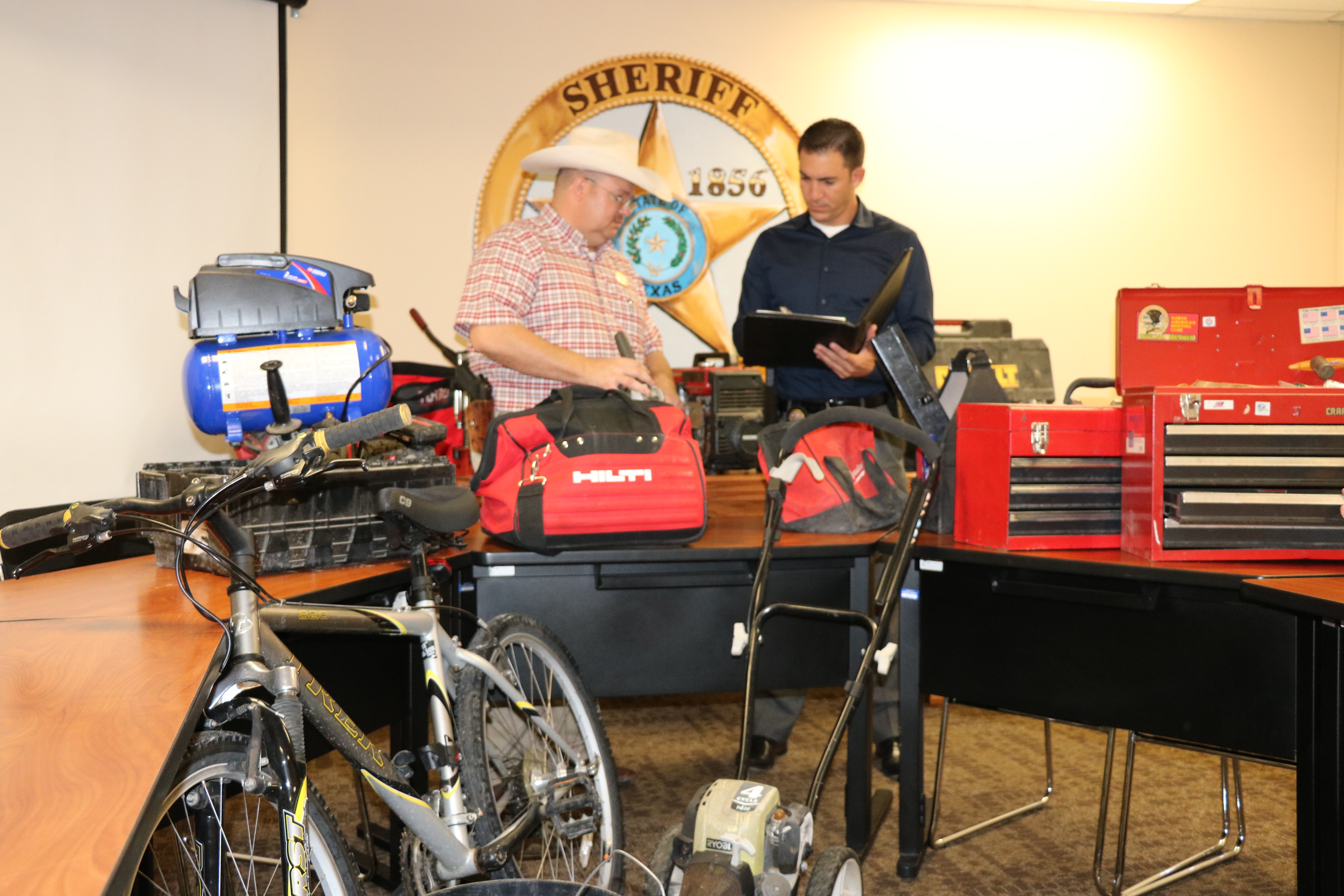 Parker County Sheriff’s CID Captain Mark Arnett and Cpl. Michael Child inventory items recovered this week during an investigation.