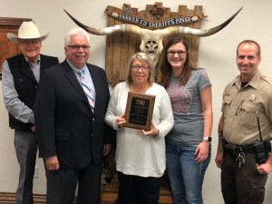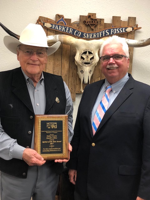 Parker County Judge Mark Riley congratulated Parker County Sheriff Larry Fowler on earning the Agency of the Year Award for professionalism and outstanding dedication to 9-1-1 [service].