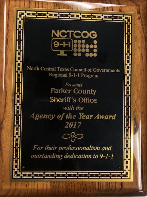 The prestigious award was given by North Central Texas Council of Governments (NCTCOG), for the Regional 9-1-1 Program. The Sheriff’s Office is the 2017 top pick of all qualifying state agencies.